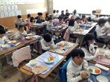明日で31年目を迎える阪神淡路大震災に合わせて、震災後ボランティアによる「炊き出し」でおにぎりや豚汁が配られ、冷たい食事が続く中、温かい食事に被災者皆が救われましたことを伝えるために、給食室が1年から3年まではわかめご飯をわざわざおにぎりにしてくれました。毎日ご飯が食べられることに感謝したいものです。