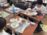 新学期は7日から始まっていますが、今年初めての給食でした。すずしろご飯に塩麹を使った鮭など新春にふさわしいメニューでした。おかわりジャンケンをするクラスもあり、美味しくいただきました。