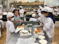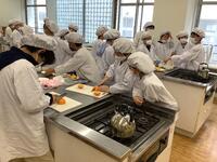 6年生が家庭科で調理実習をしました。玉ねぎ、にんじん、ピーマンなど、包丁の持ち方や切り方に気をつけながら作りました。