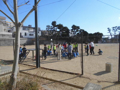 その後、運動場でお楽しみ会「逃走中」を始めるところ。