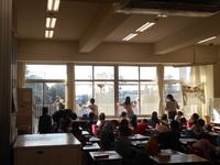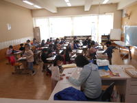 4年生 「あゆみ」の見方についてお話しています。「1学期に比べて上がった、落ちたではなく、2学期の姿についての評価だから、何をがんばったのか、3学期はどんなことに力を入れていったらいいのかを考えながら見てほしい。」
