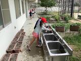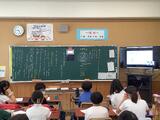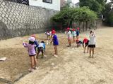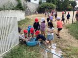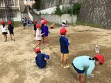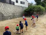 生活科の学習で使い終わった容器を使って水鉄砲を作って的当てをしました。勢いよく飛び出した水に歓声をあげながら楽しみました。蒸し暑さが残っているので少し水に濡れ、子ども達も気持ちよさそうでした。