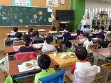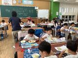 6年生の教室を借りて、おいしい給食をたくさん食べてくれました。