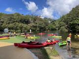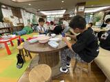 アスレチック、はだしの里で活動を終えて、昼ごはんを食べました。少し予定より遅れましたが、テキパキと準備できました。