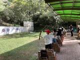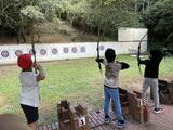 朝ご飯を食べてから、昨日とは違う活動にチャレンジしました。集合写真を撮ってから、アスレチックスをします。今のところ予定通りに進んでいます。