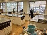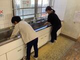 PTA役員やボランティアの保護者の方にも、ご協力いただき、家庭科室や理科室の水まわりや棚もきれいにしていただきました。普段、なかなか手の届かないところが美しくなりました。